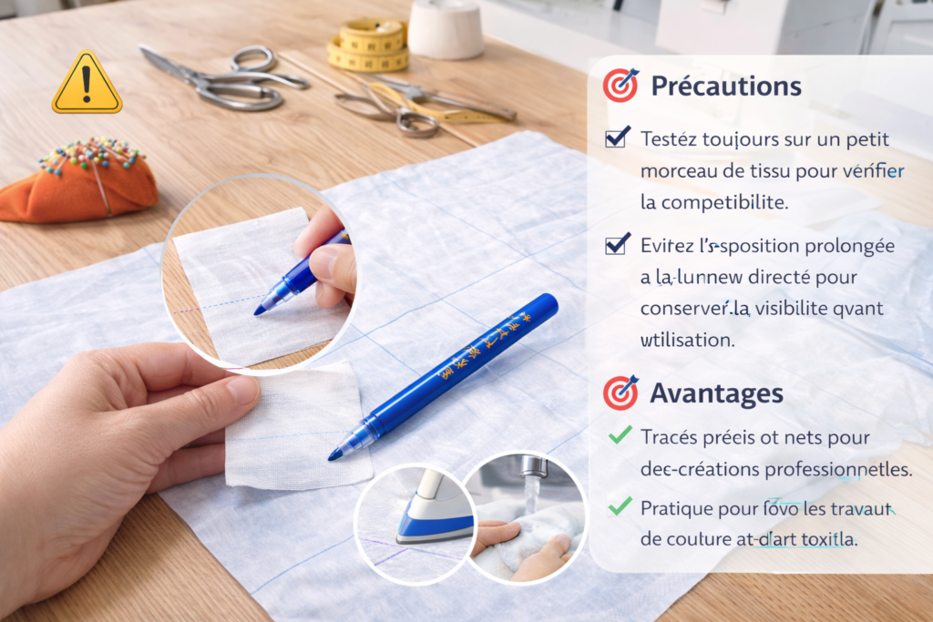 Stylo de Traçage Effaçable pour Tissu – Marqueur Couture Thermo-Effaçable à Chaud et à Froid – Pointe Fine & Moyenne – Stylo pour Couture, Broderie, Patchwork – Encre Non Toxique Bleu / Rouge